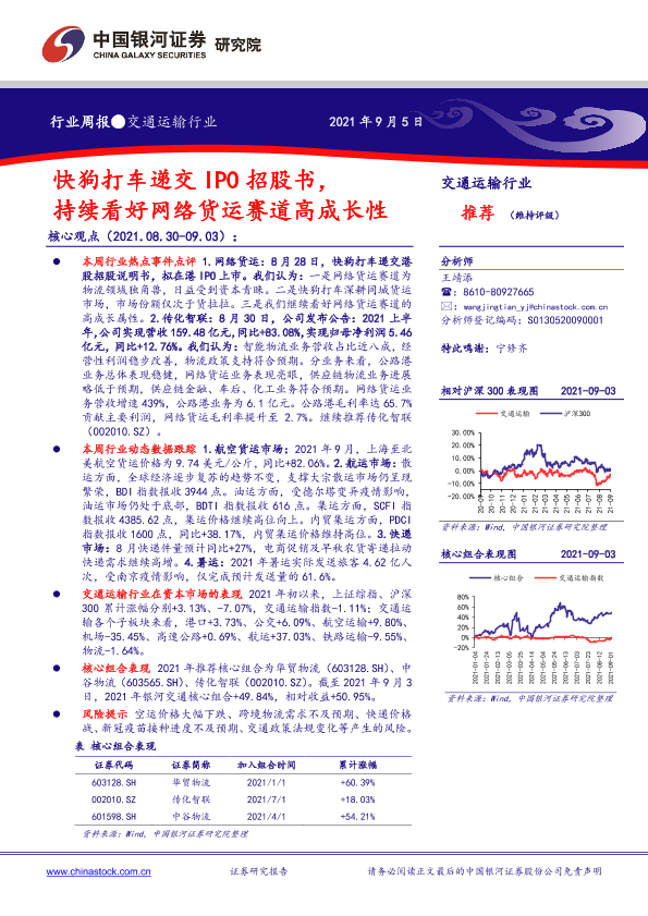 【银河证券】【20210905】交通运输行业周报 快狗打车递交IPO招股书,持续看好网络货运赛道高成长性-19页