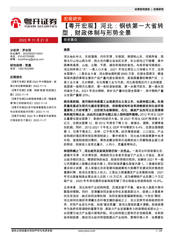 【粤开证券】【20221121】河北:钢铁第一大省转型,财政体制与形势全景-29页