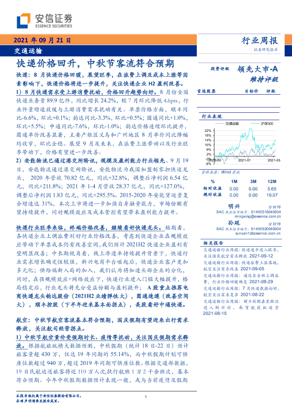 【安信证券】【20210921】交通运输行业周报:快递价格回升,中秋节客流符合预期-18页