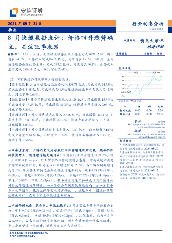 【安信证券】【20210921】8月快递数据点评:价格回升趋势确立,关注旺季表现-8页