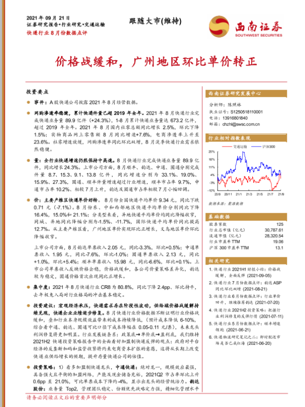 【西南证券】【20210921】快递行业8月份数据点评-12页