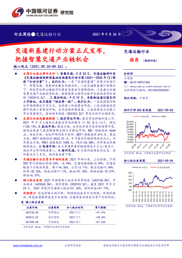 【银河证券】【20210926】交通运输行业周报:交通新基建行动方案正式发布,把握智慧交通产业链机会-19页