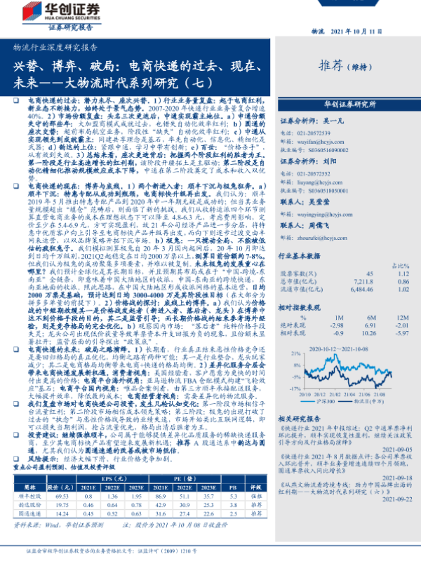 【华创证券】【20211011】物流行业深度研究报告:大物流时代系列研究(七)-兴替、博弈、破局:电商快递的过去、现在、未来-67页