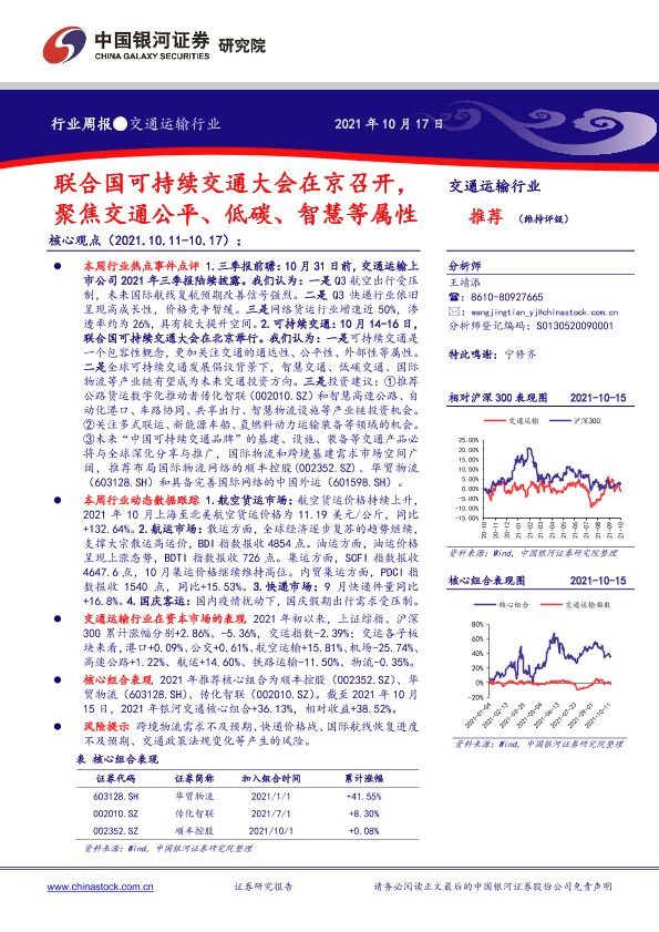 【银河证券】【20211017】交通运输行业周报:联合国可持续交通大会在京召开,聚焦交通公平、低碳、智慧等属性-20页