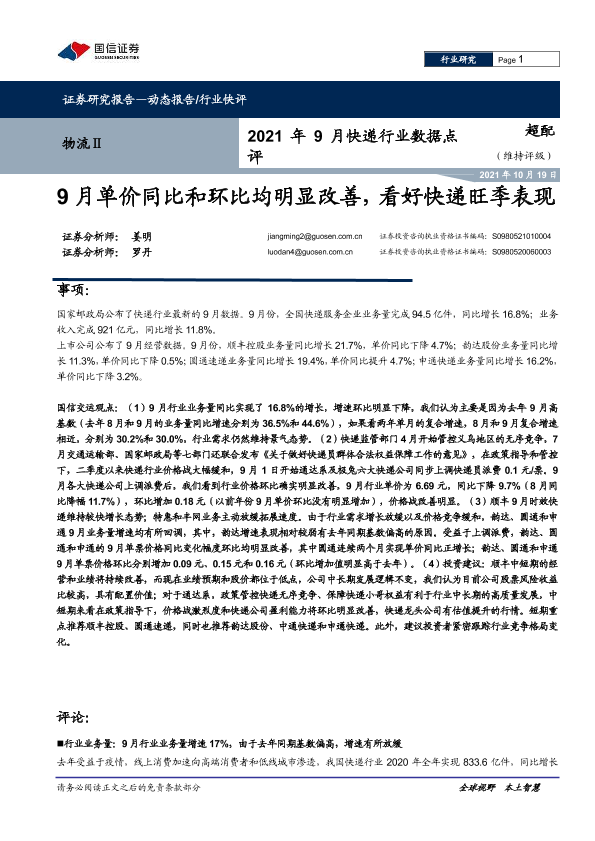 【国信证券】【20211019】2021年9月快递行业数据点评-7页