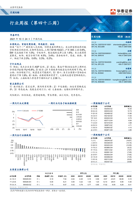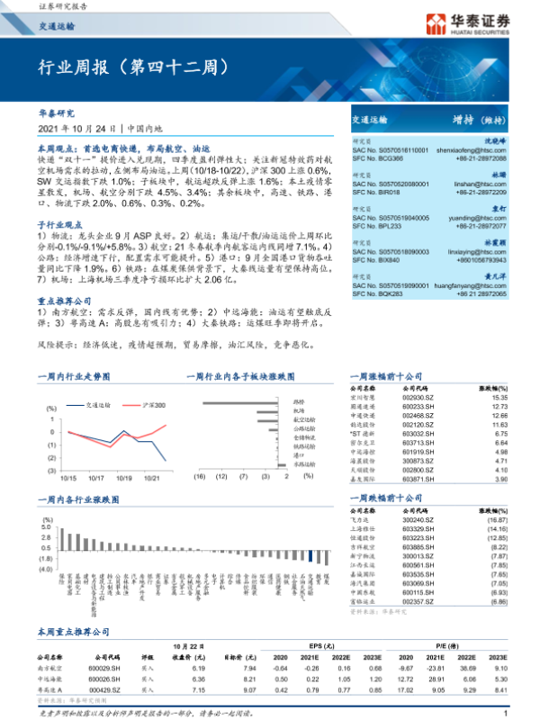 【华泰证券】【20211024】交通运输行业周报(第四十二周)-10页