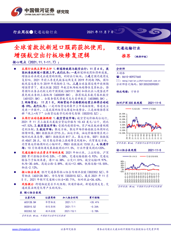 【银河证券】【20211107】全球首款抗新冠口服药获批使用,增强航空出行板块修复逻辑-25页