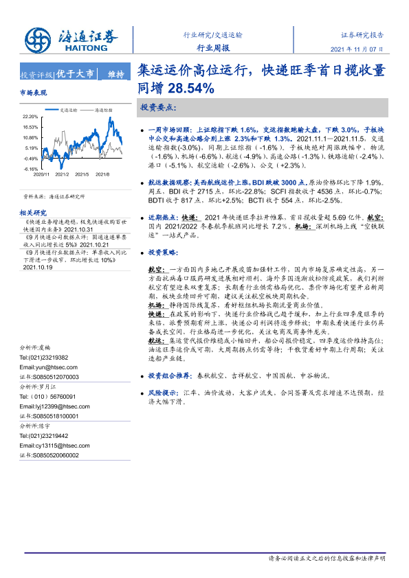 【海通证券】【20211107】集运运价高位运行,快递旺季首日揽收量同增28.54%-9页