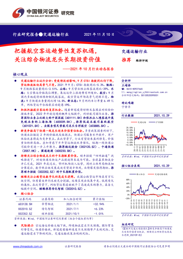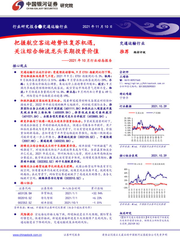 【银河证券】【20211110】交通运输行业2021年10月行业动态报告:把握航空客运趋势性复苏机遇,关注综合物流龙头长期投资价值-39页
