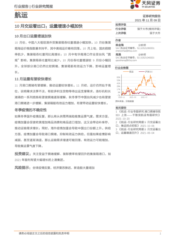 【天风证券】【20211109】10月交运看出口:运量增速小幅加快-11页