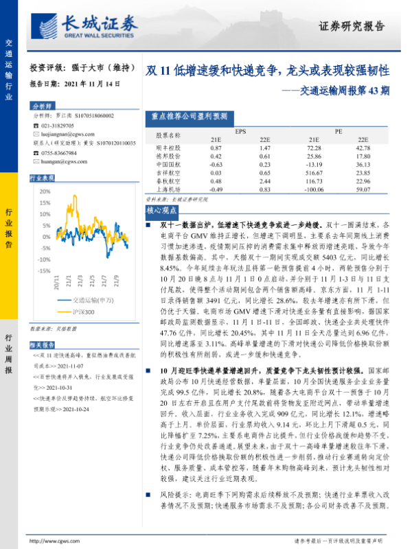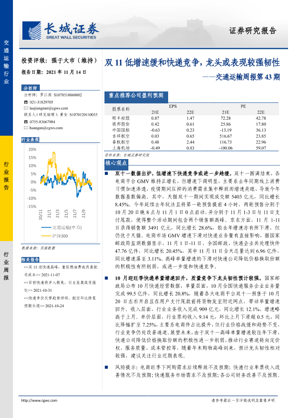长城证券 交通运输仓储邮政 2021年 PDF 1.72 MB