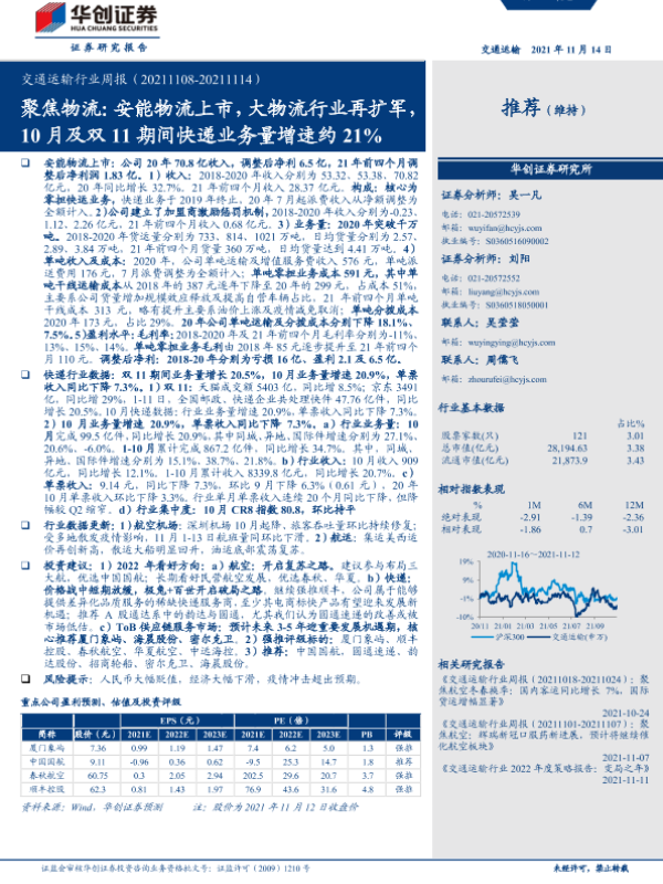 【华创证券】【20211114】交通运输行业周报:聚焦物流-24页
