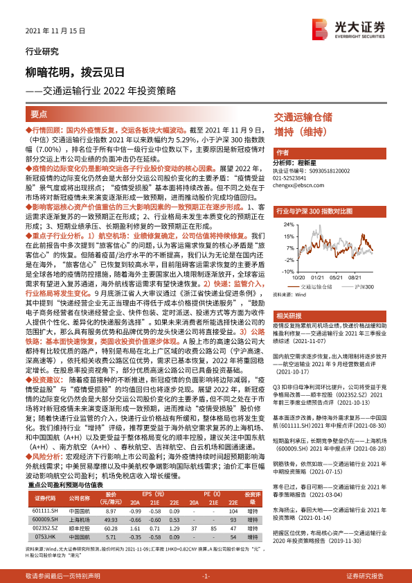 【光大证券】【20211115】交通运输行业2022年投资策略:柳暗花明,拨云见日-28页
