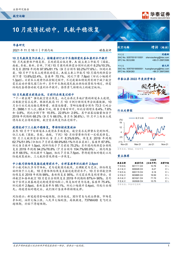 【华泰证券】【20211116】10月疫情扰动中,民航平稳恢复-7页