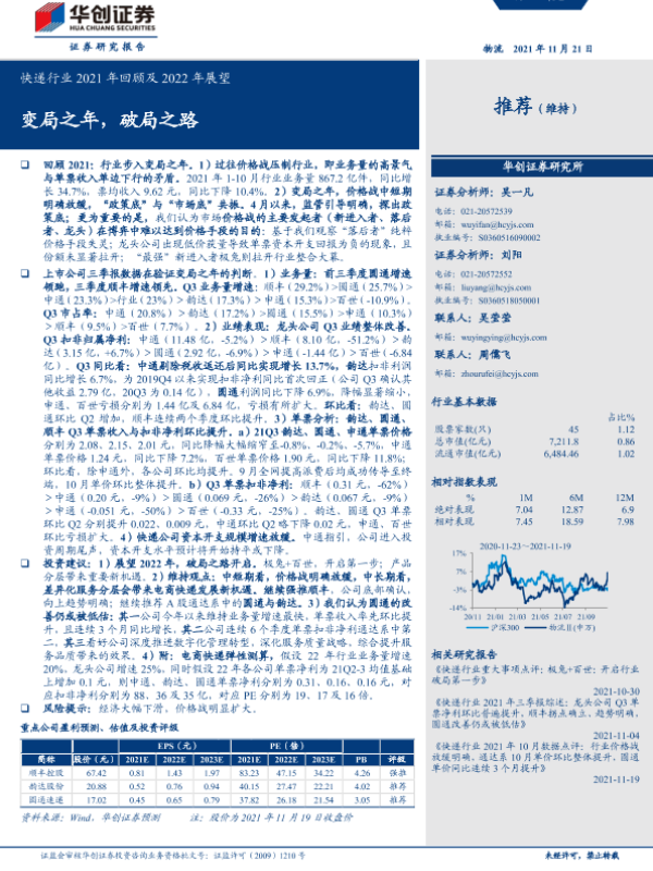 【华创证券】【20211121】快递行业2021年回顾及2022年展望:变局之年,破局之路-27页