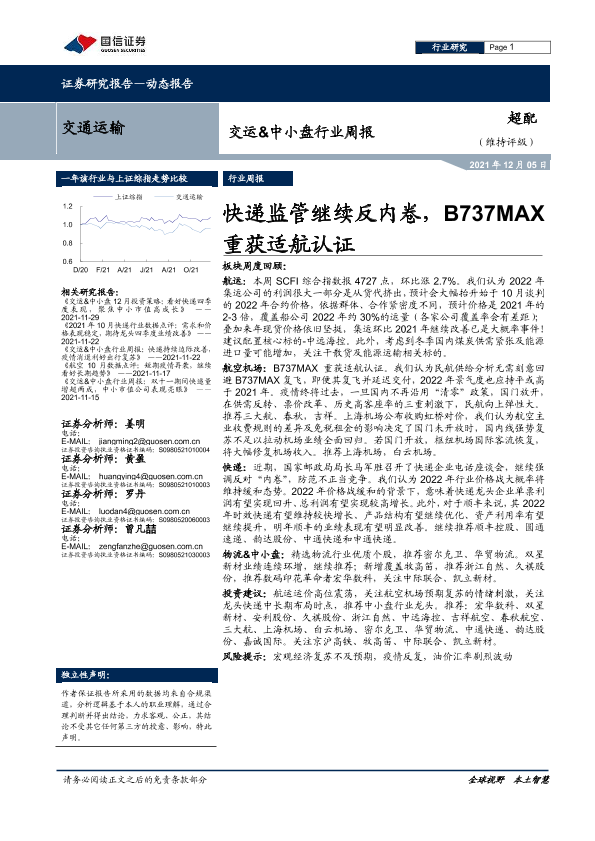 【国信证券】【20211205】交运&中小盘行业周报:快递监管继续反内卷,B737MAX重获适航认证-23页