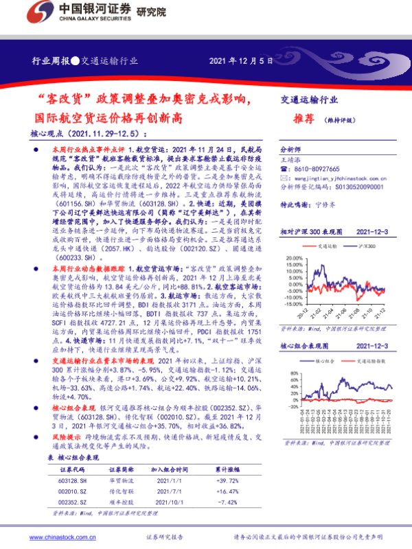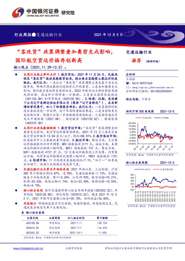 【银河证券】【20211205】交通运输行业:“客改货”政策调整叠加奥密克戎影响,国际航空货运价格再创新高-26页