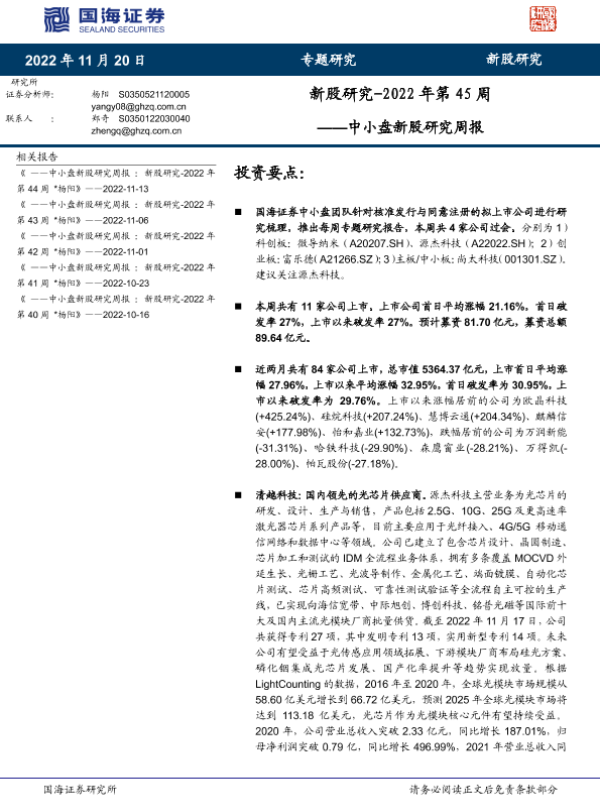 【国海证券】【20221120】中小盘新股研究周报新股研究:2022年第45周-19页