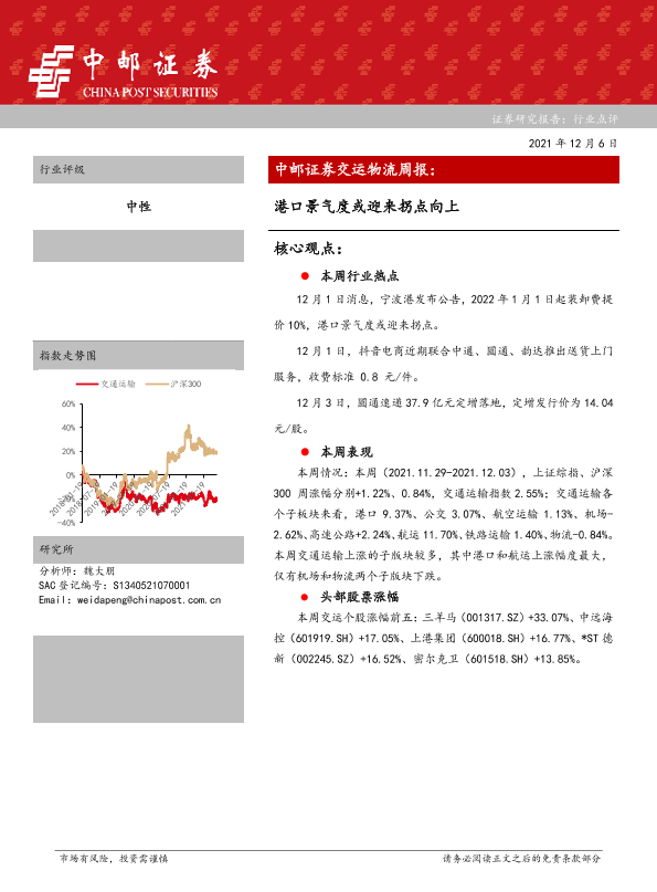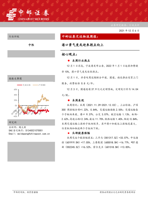 【中邮证券】【20211206】交运物流周报:港口景气度或迎来拐点向上-14页