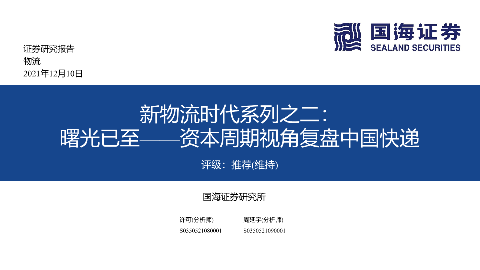 【国海证券】【20211210】新物流时代系列之二:曙光已至——资本周期视角复盘中国快递-43页