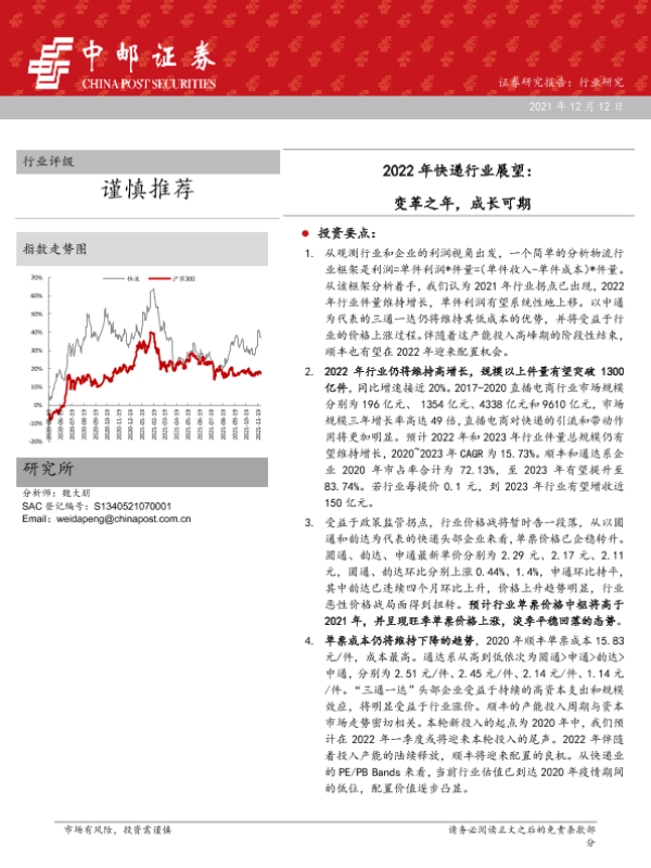 【中邮证券】【20211212】2022年快递行业展望:变革之年,成长可期-60页