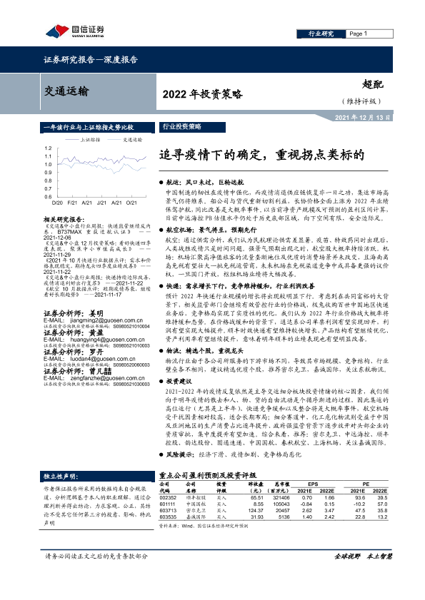 【国信证券】【20211213】2022年交通运输行业投资策略:追寻疫情下的确定,重视拐点类标的-57页
