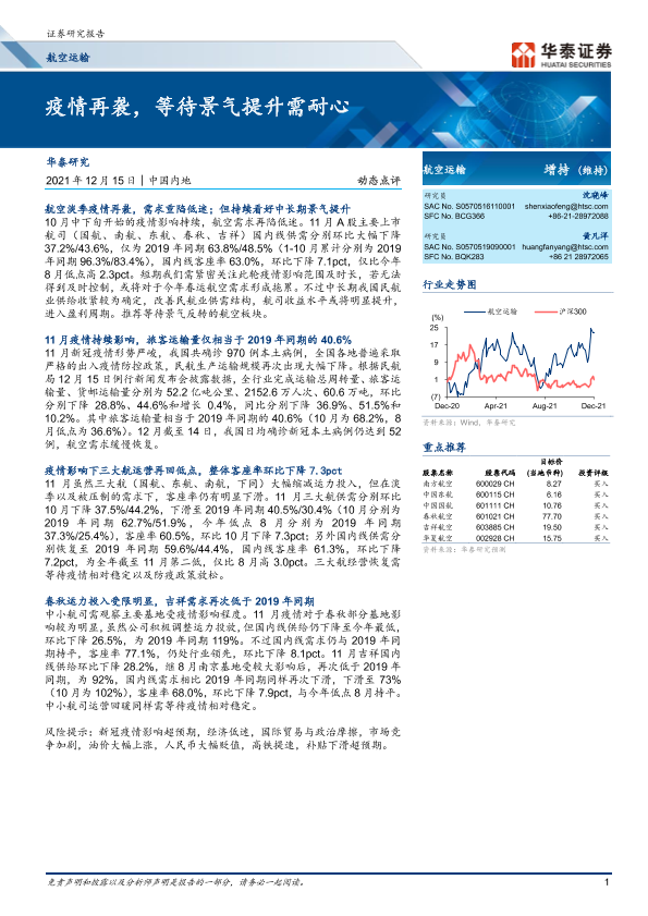 【华泰证券】【20211215】航空运输:疫情再袭,等待景气提升需耐心-7页