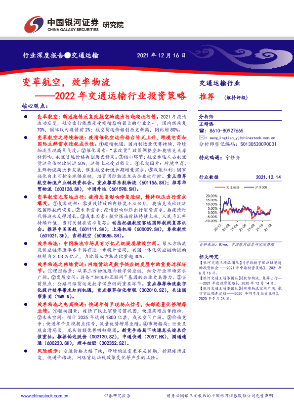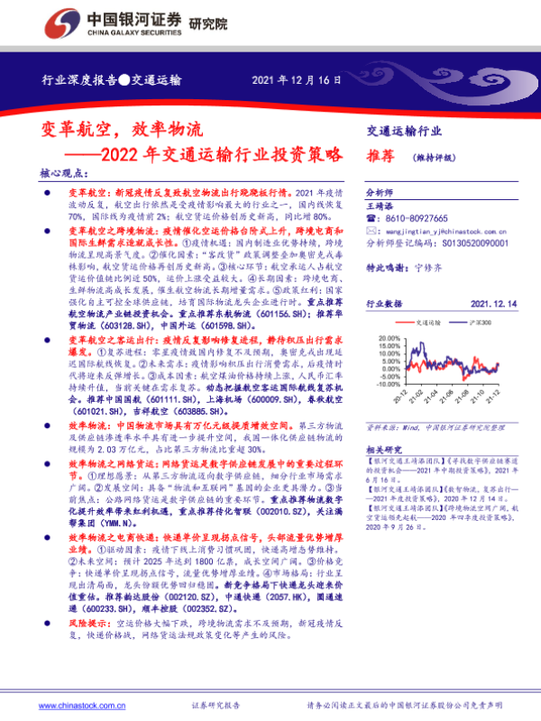 【银河证券】【20211216】2022年交通运输行业投资策略:变革航空,效率物流-42页