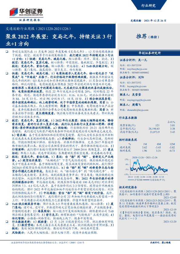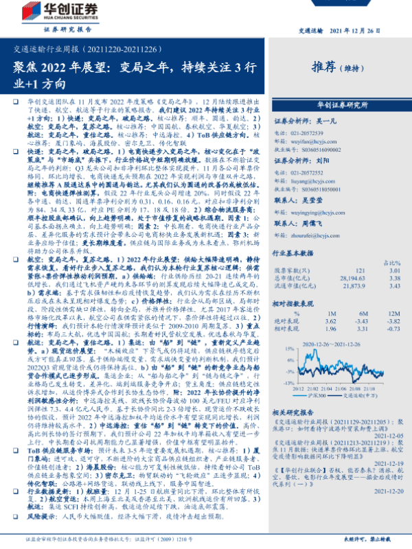 【华创证券】【20211226】交通运输行业周报:聚焦2022年展望:变局之年,持续关注3行业+1方向-23页