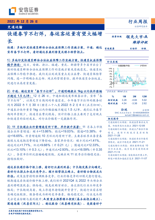 【安信证券】【20211226】交通运输行业周报:快递春节不打烊,春运客运量有望大幅增长-16页