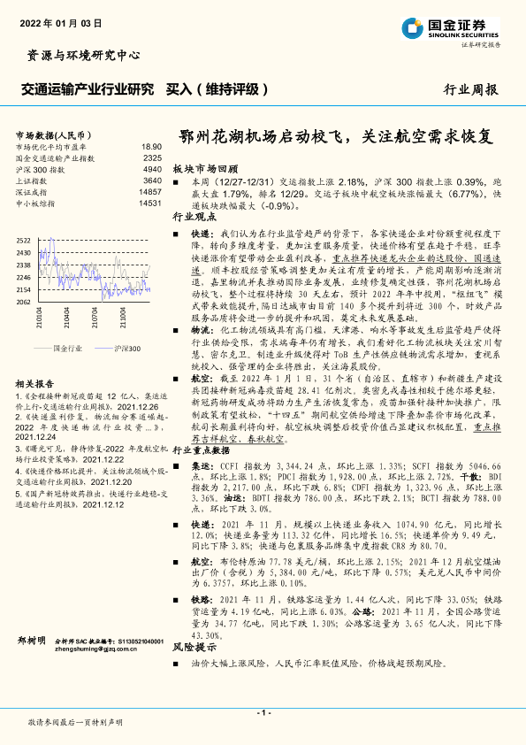 【国金证券】【20220103】交通运输行业周报:鄂州花湖机场启动校飞,关注航空需求恢复-14页