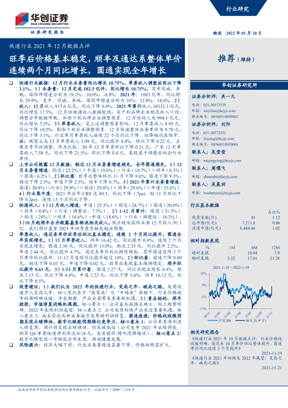 【华创证券】【20220120】快递行业2021年12月数据点评-9页