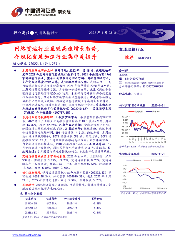 【银河证券】【20220123】交通运输行业周报:网络货运行业呈现高速增长态势,合规化发展加速行业集中度提升-25页