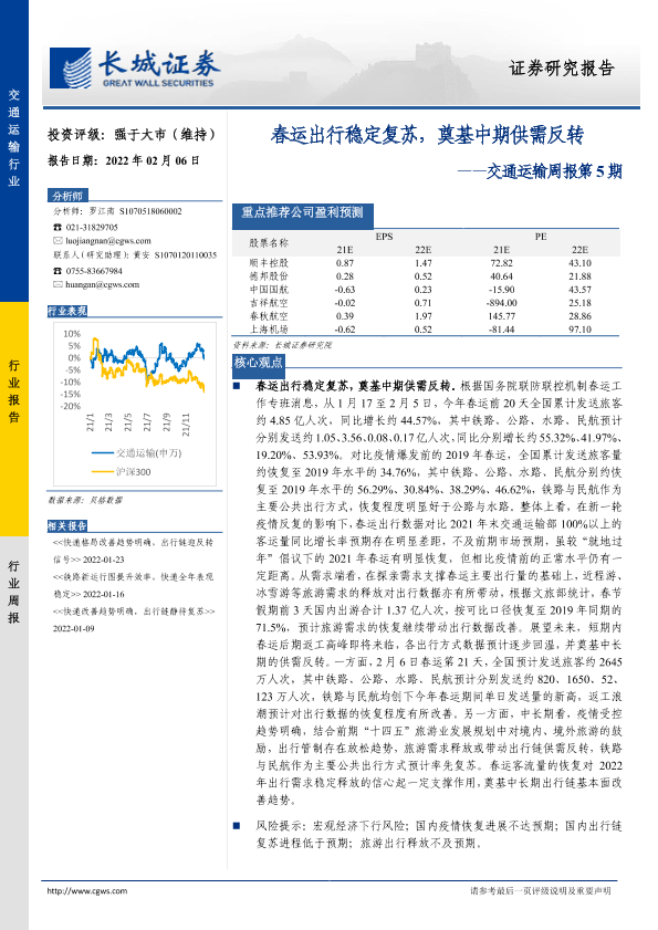 【长城证券】【20220206】春运出行稳定复苏,奠基中期供需反转-24页