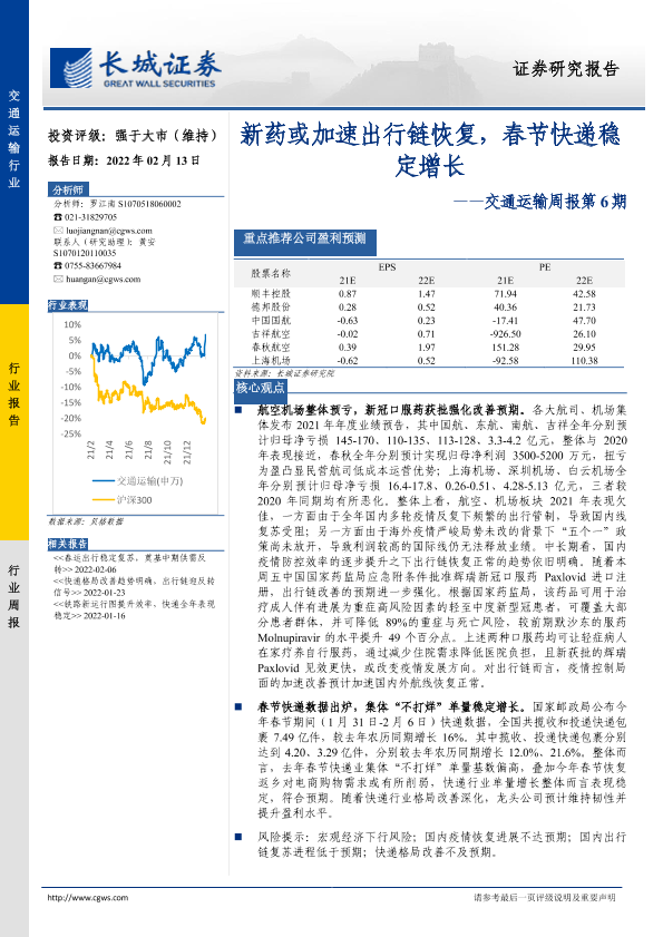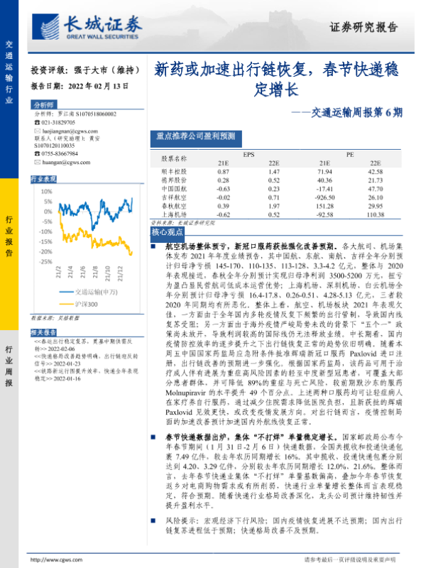【长城证券】【20220213】新药或加速出行链恢复,春节快递稳定增长-27页