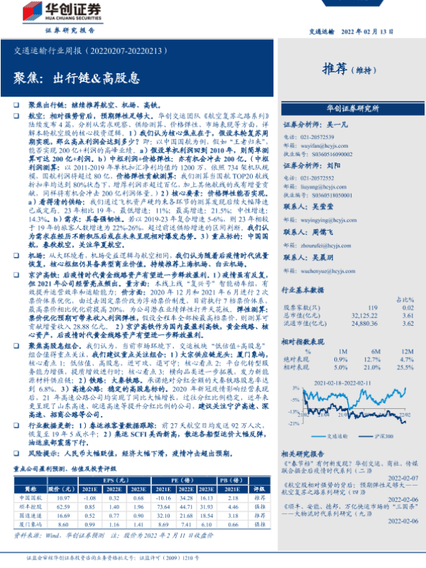【华创证券】【20220213】交通运输行业周报:聚焦:出行链&高股息-19页