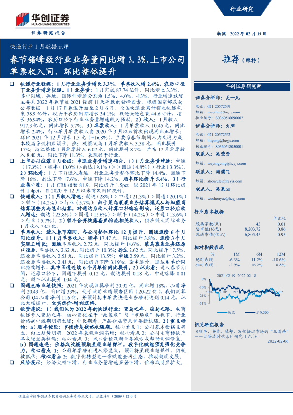 【华创证券】【20220219】快递行业1月数据点评-9页
