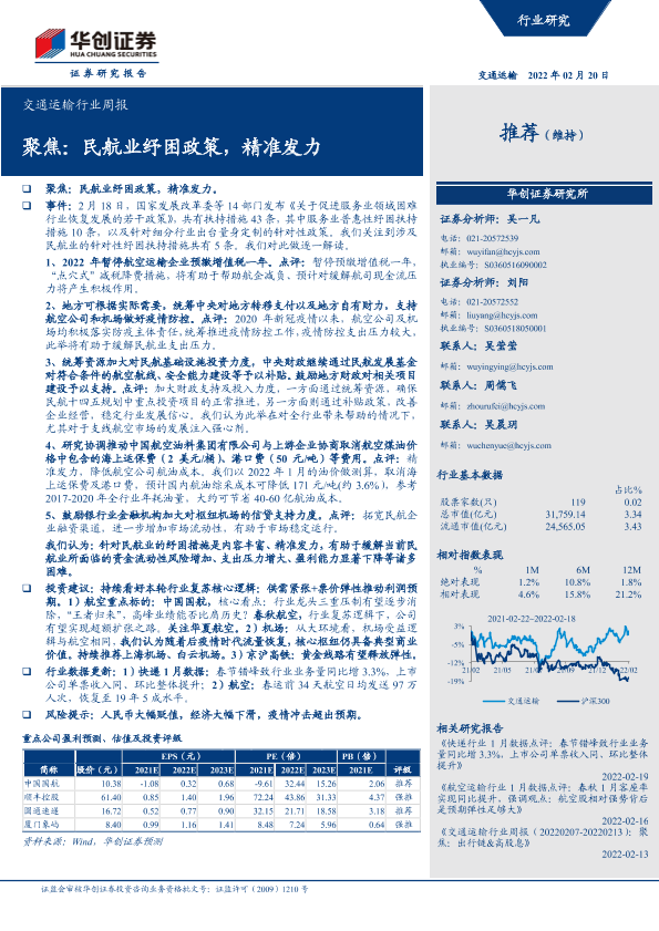 【华创证券】【20220220】交通运输行业周报:聚焦民航业纾困政策,精准发力-16页