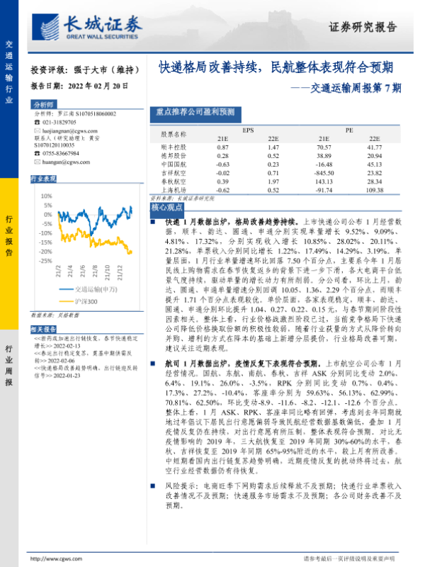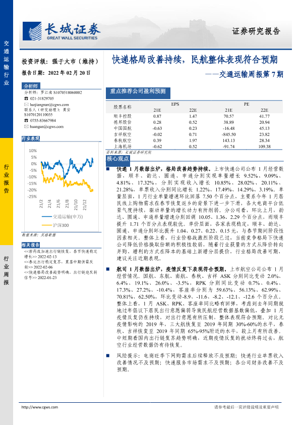 【长城证券】【20220220】快递格局改善持续,民航整体表现符合预期-26页