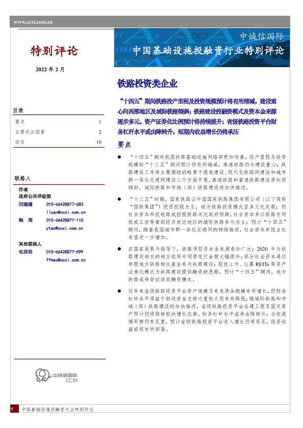 【中诚信国际】【20220301】中国基础设施投融资行业特别评论:铁路投资类企业-12页
