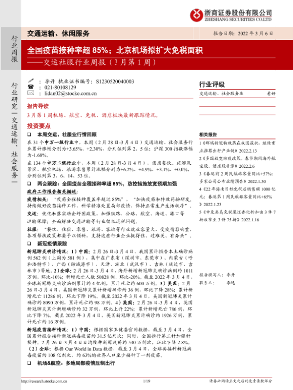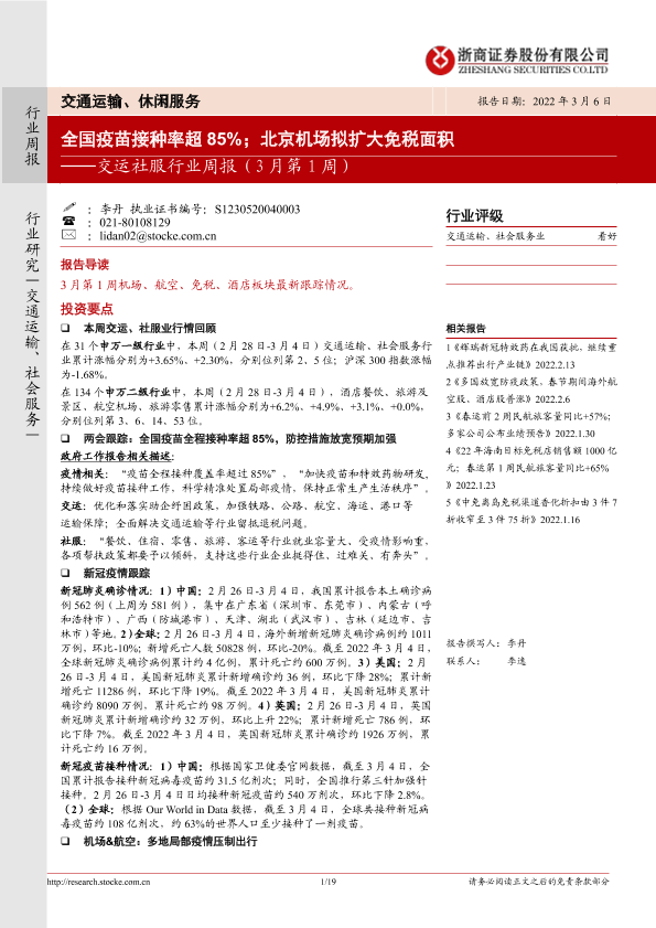 【浙商证券】【20220306】交运社服行业周报(3月第1周)-19页