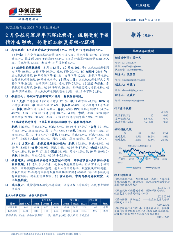 【华创证券】【20220315】航空运输行业2022年2月数据点评-11页