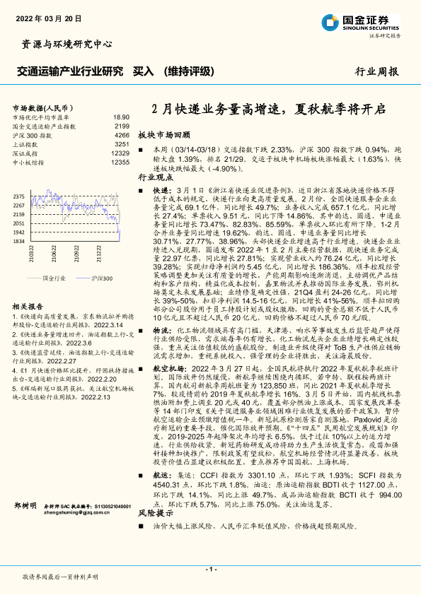 【国金证券】【20220320】2月快递业务量高增速,夏秋航季将开启-14页