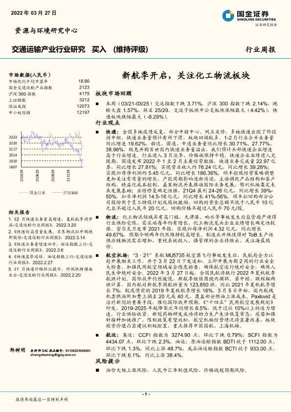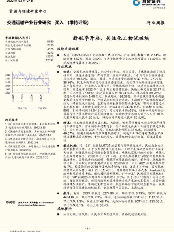 【国金证券】【20220327】新航季开启,关注化工物流板块-14页