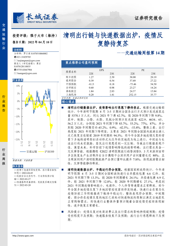 【长城证券】【20220410】交通运输周报第14期:清明出行链与快递数据出炉,疫情反复静待复苏-29页
