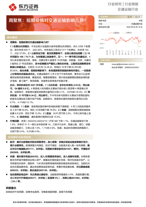 【东方证券】【20220410】交通运输行业周聚焦:短期疫情对交通运输影响几何?-15页