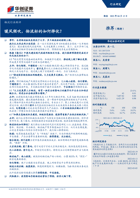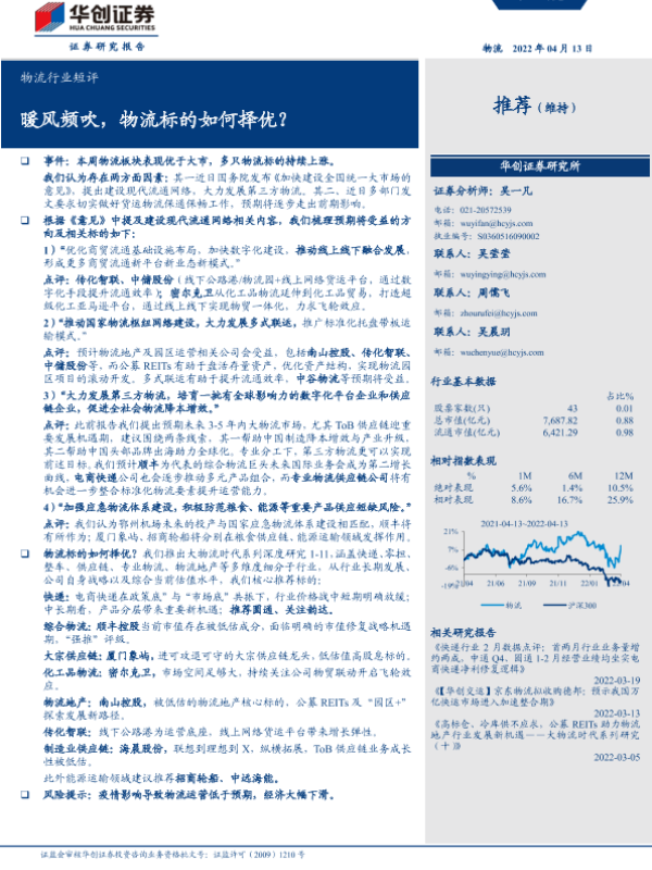 【华创证券】【20220413】物流行业短评:暖风频吹,物流标的如何择优?-4页