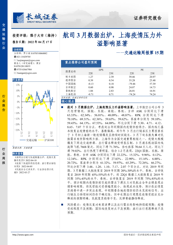 【长城证券】【20220417】交通运输周报第15期:航司3月数据出炉,上海疫情压力外溢影响显著-27页