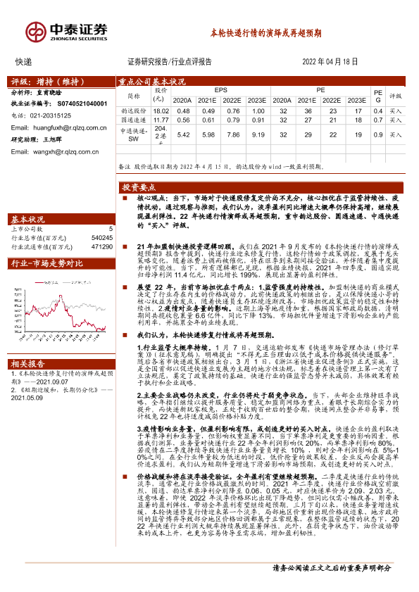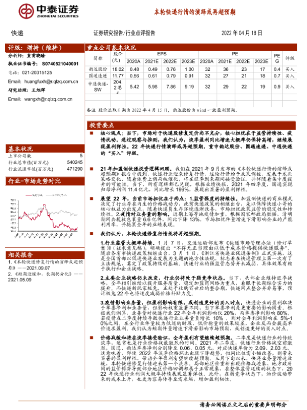 【中泰证券】【20220418】本轮快递行情的演绎或再超预期-5页