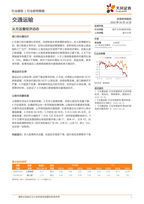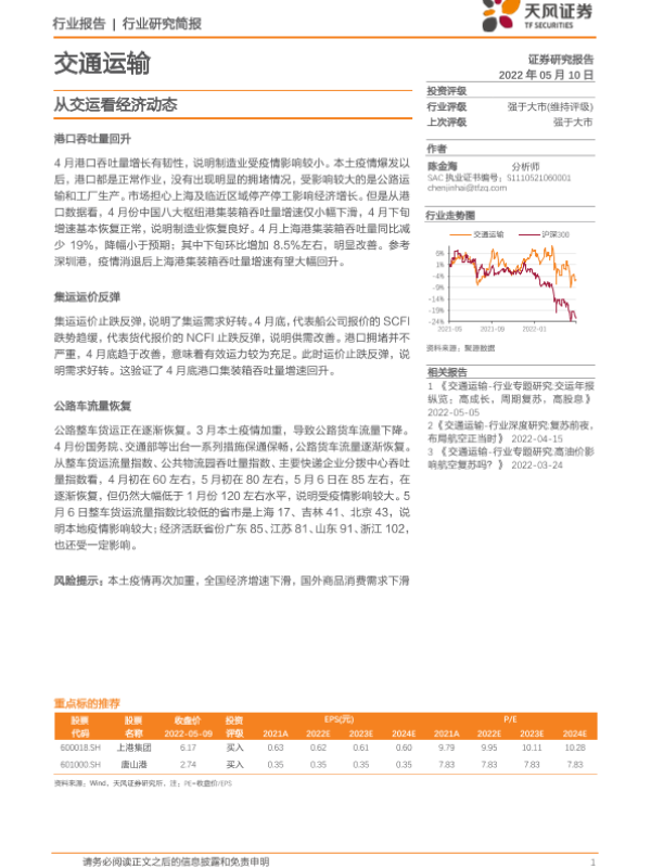 交通运输 公路车流量 港口吞吐量 经济动态 集运运价